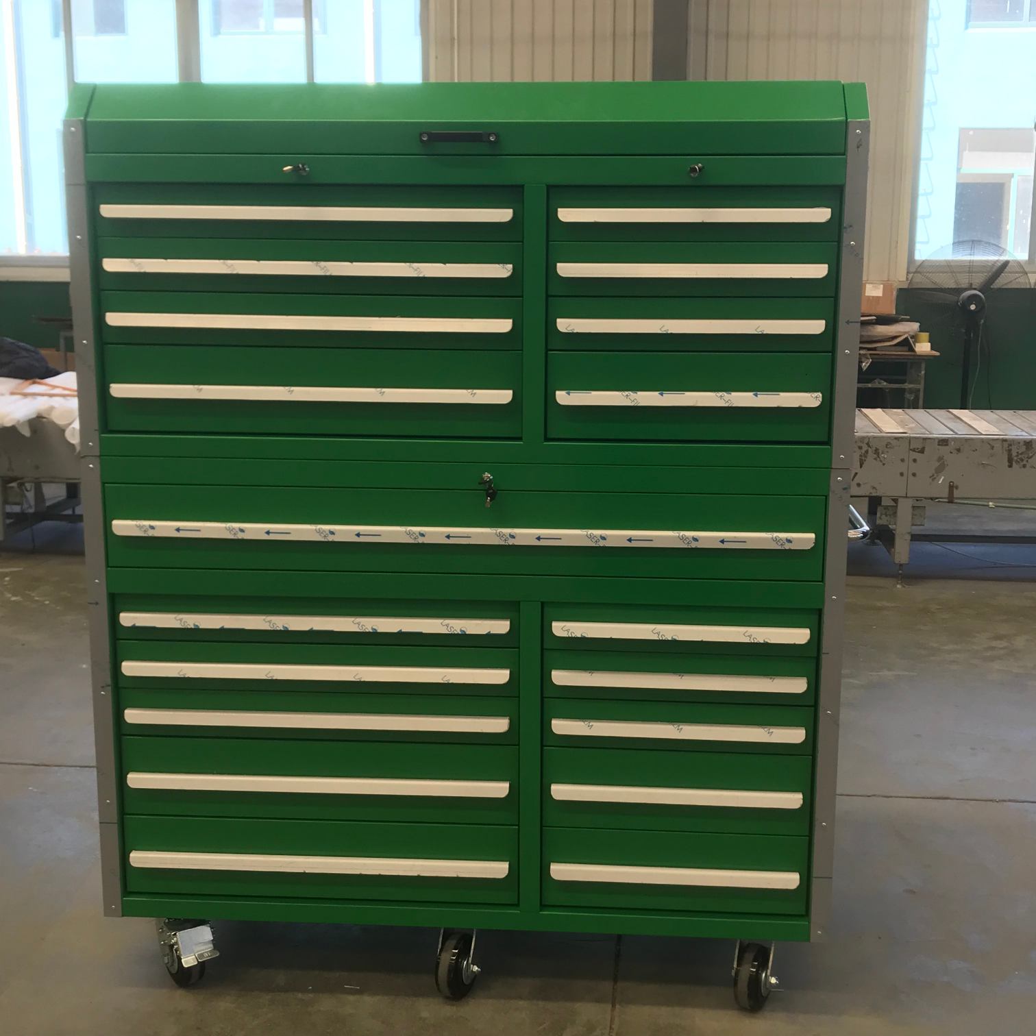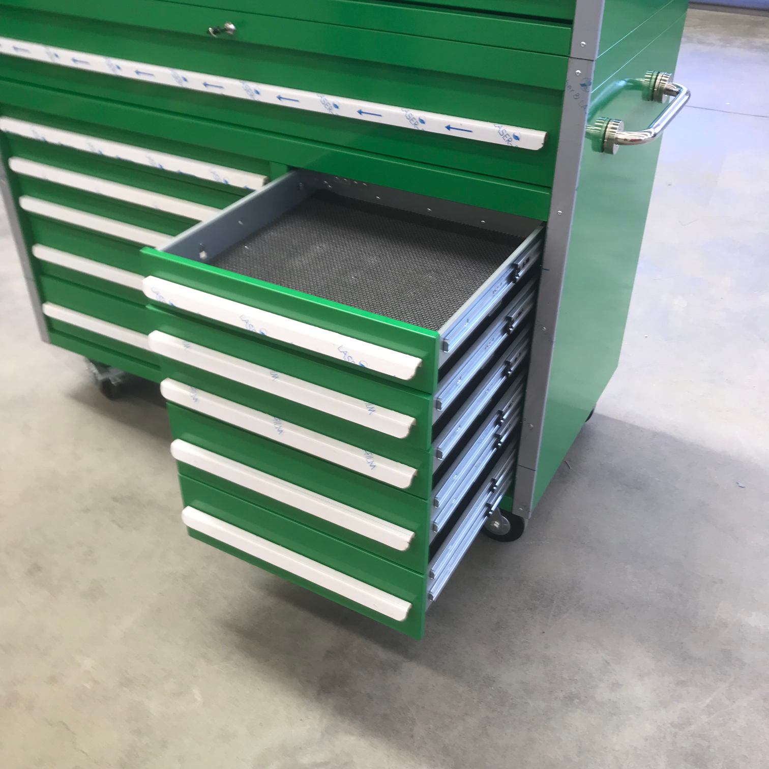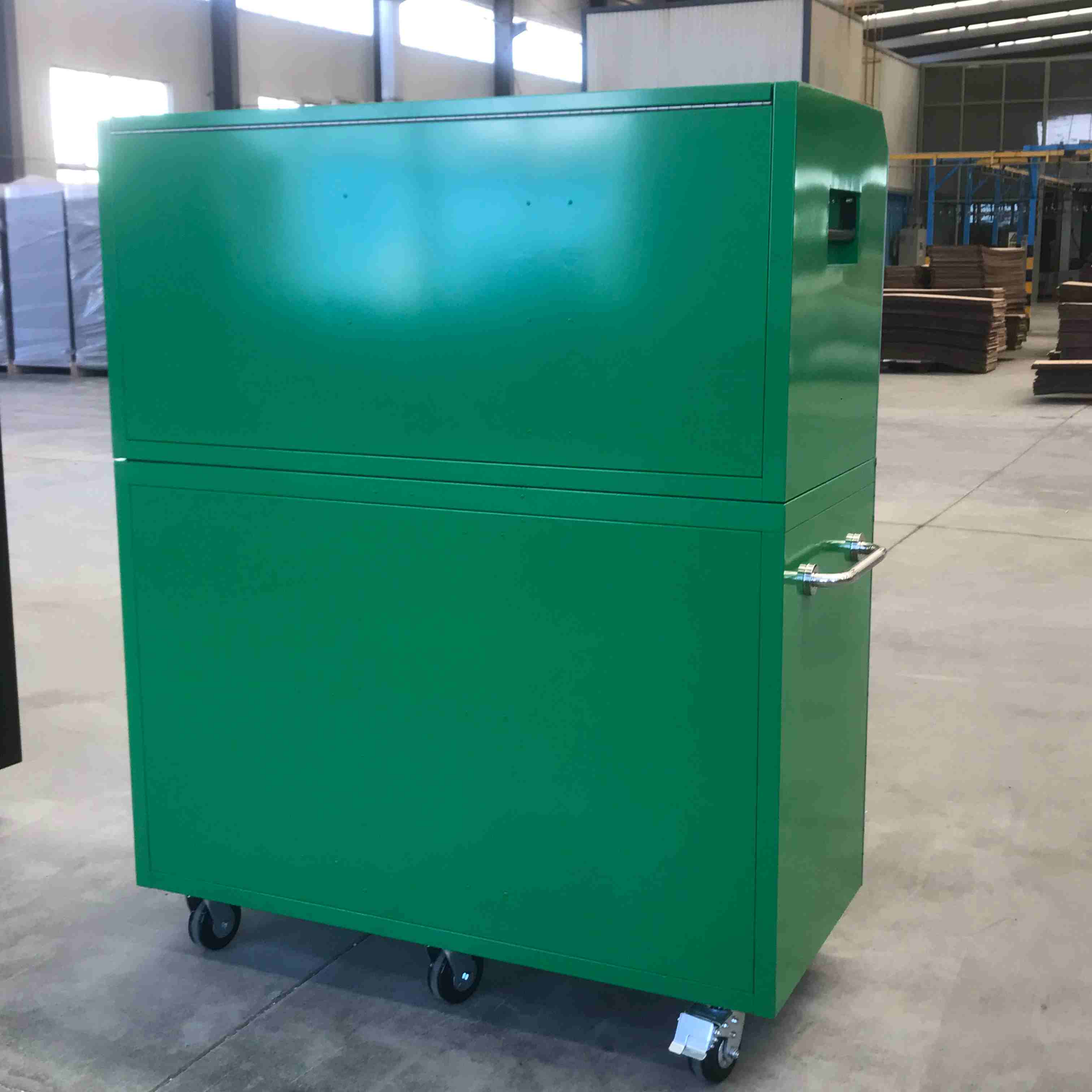 Хладно ваљано складиште роллеи користи се за складиштење руку, електричних алата, механичких резервних делова и малу опрему у индустријску, радионице и дом. Велико оптерећење капацитета и мобилни дизајн омогућавају радницима да лако приступају стварима у различитим радним станицама.