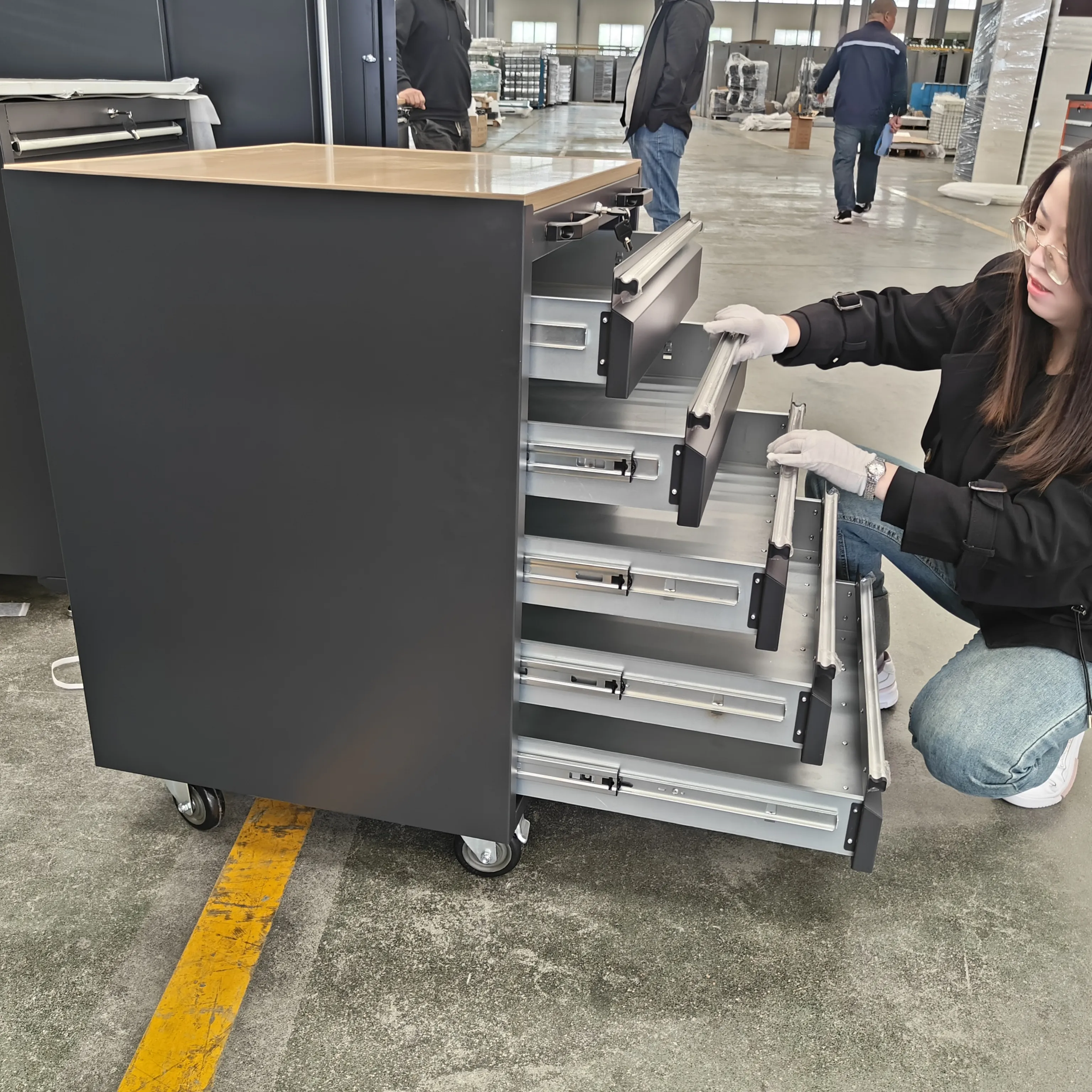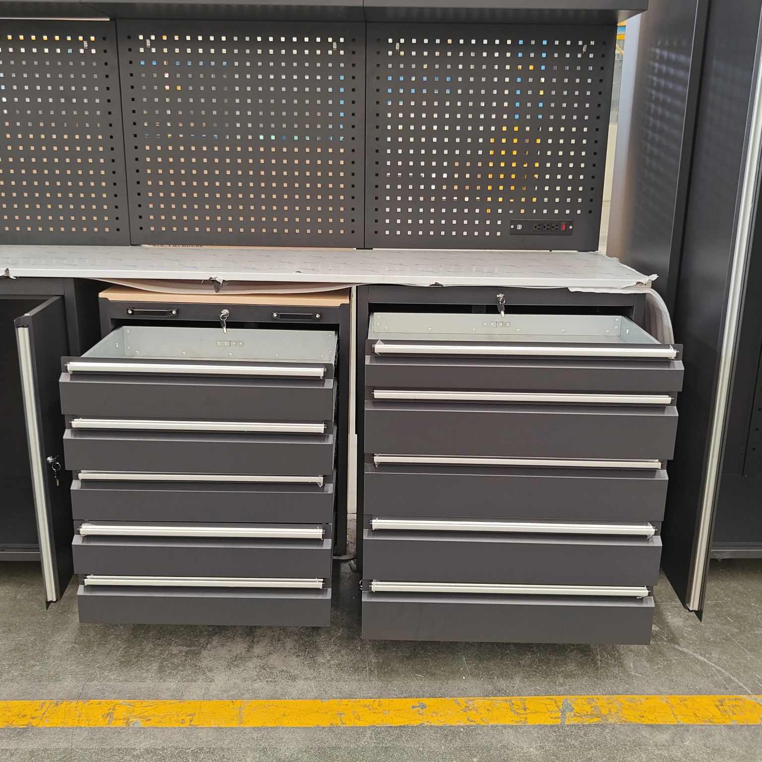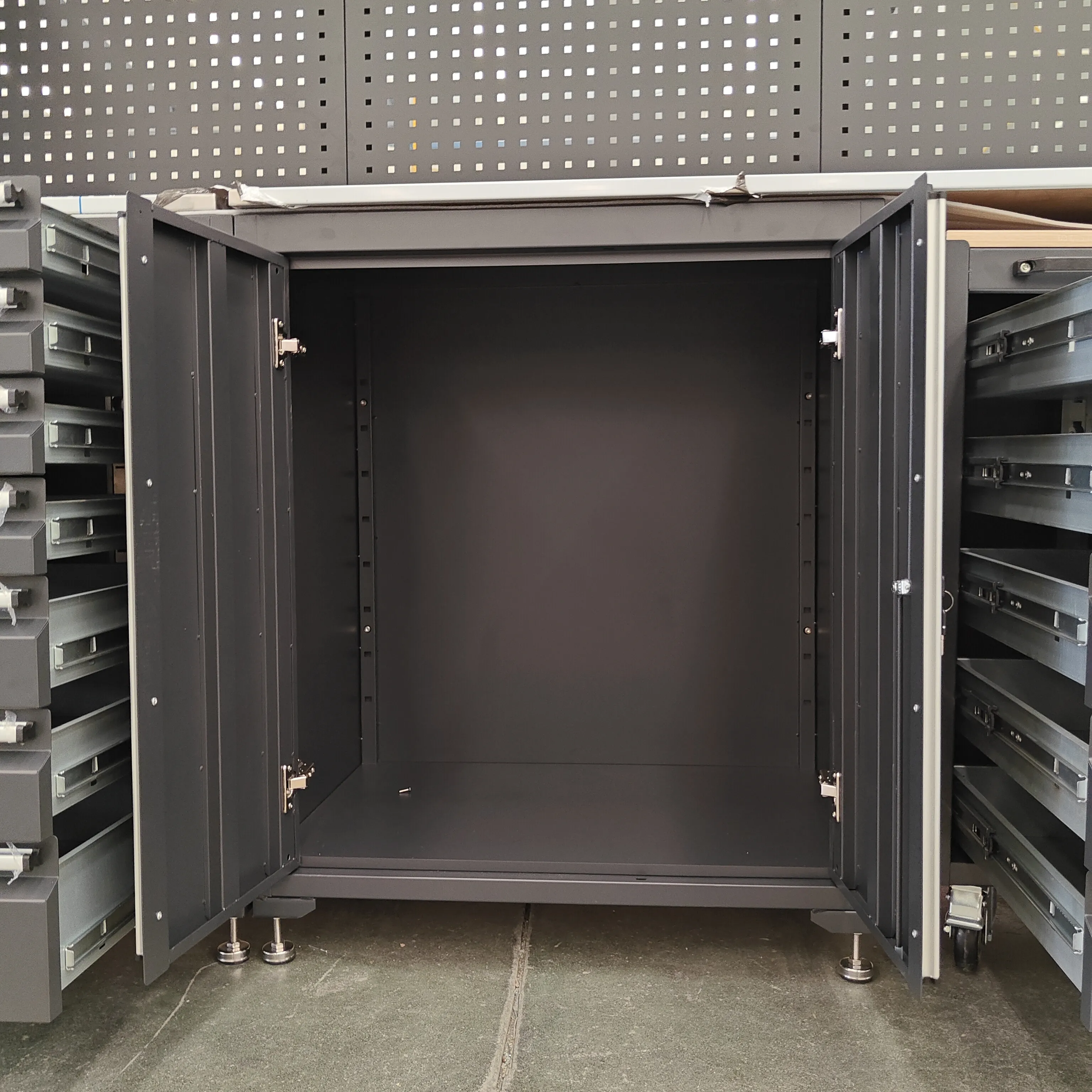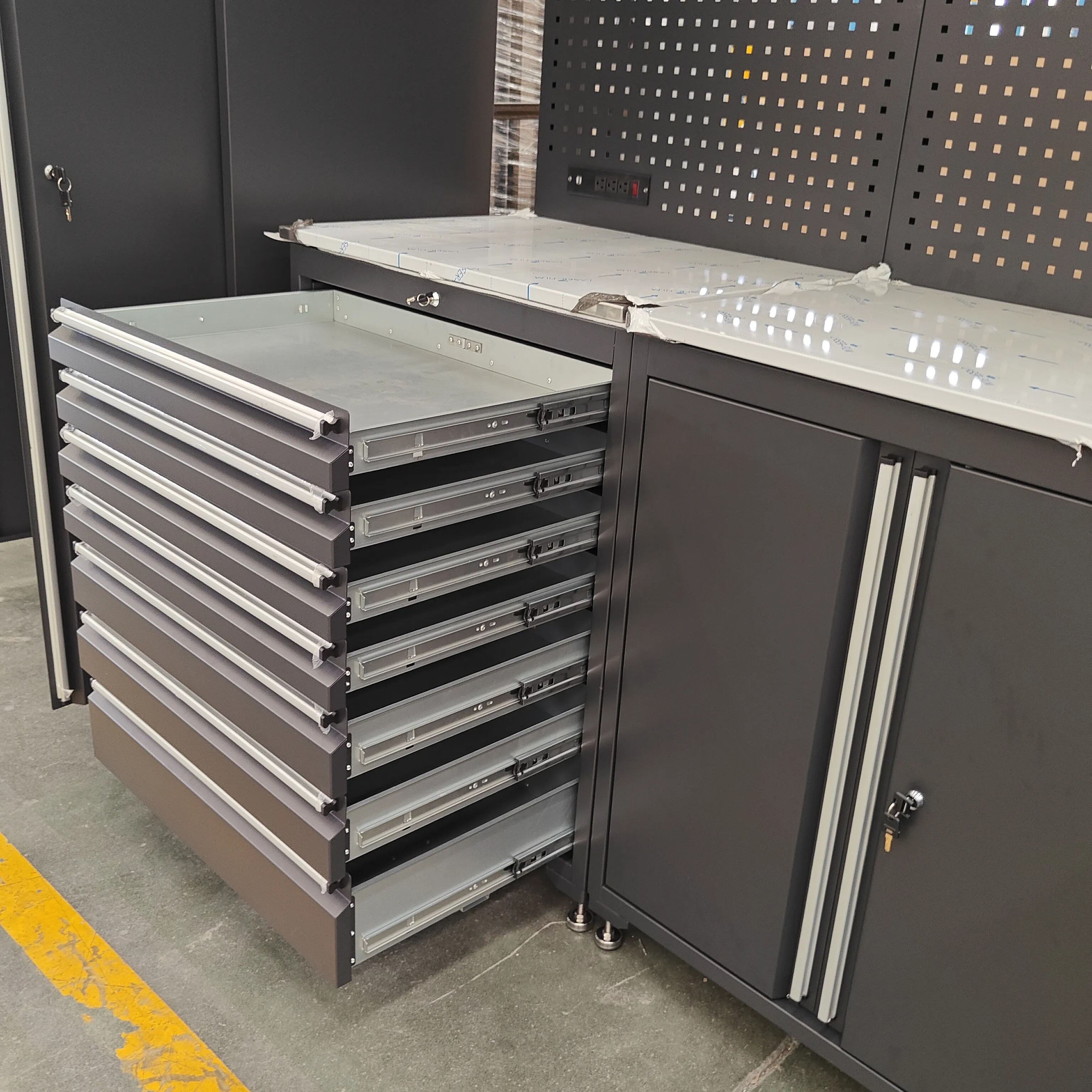 Ладице ормара за тешки алат опремљени су тихим клизним шинама, осигуравајући без буке приликом отварања или затварања фиока.