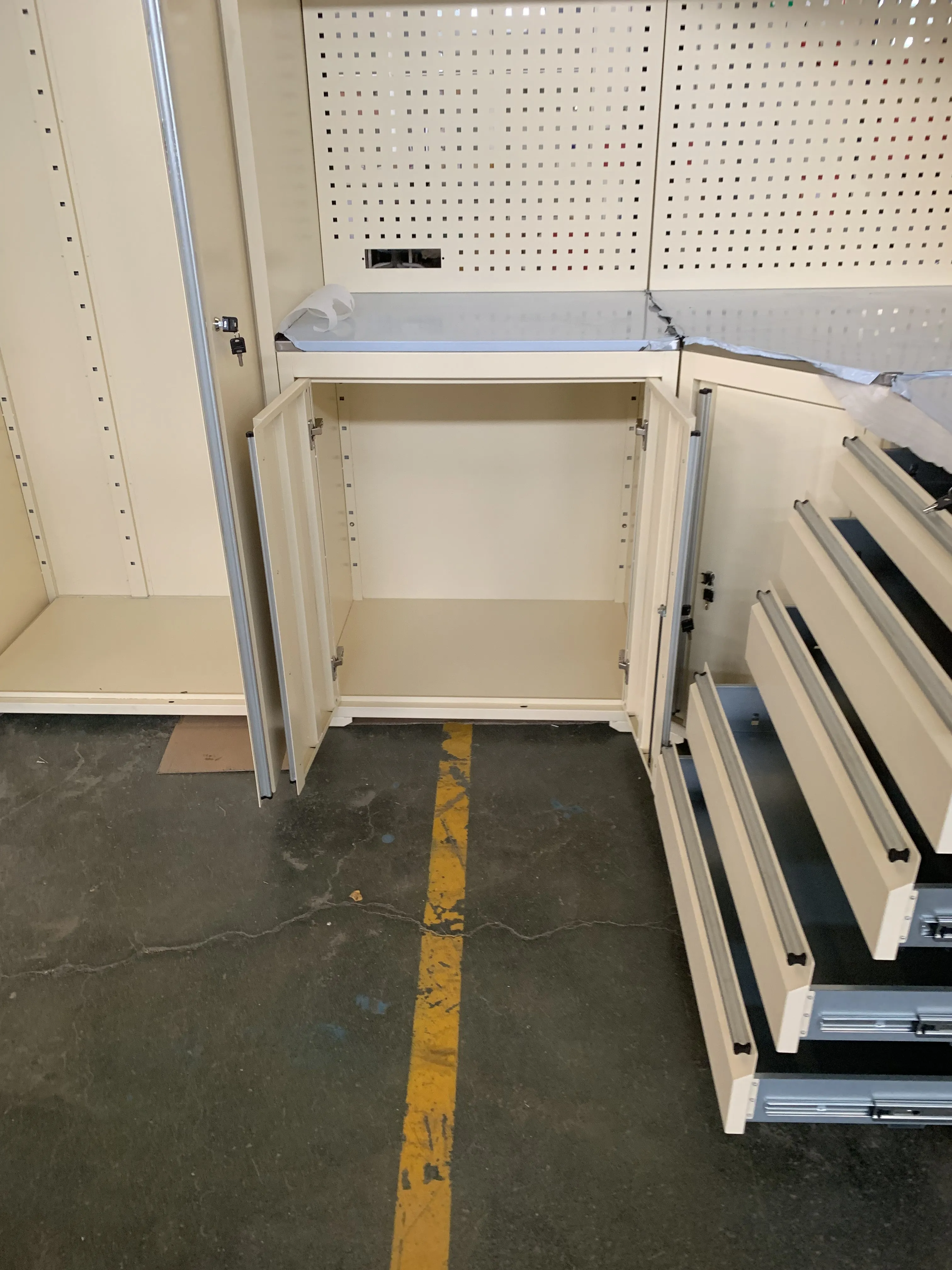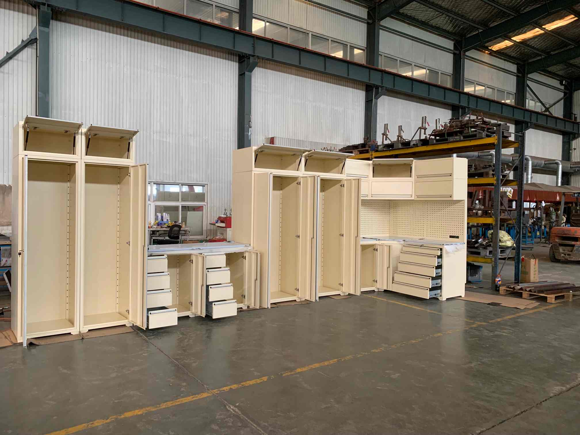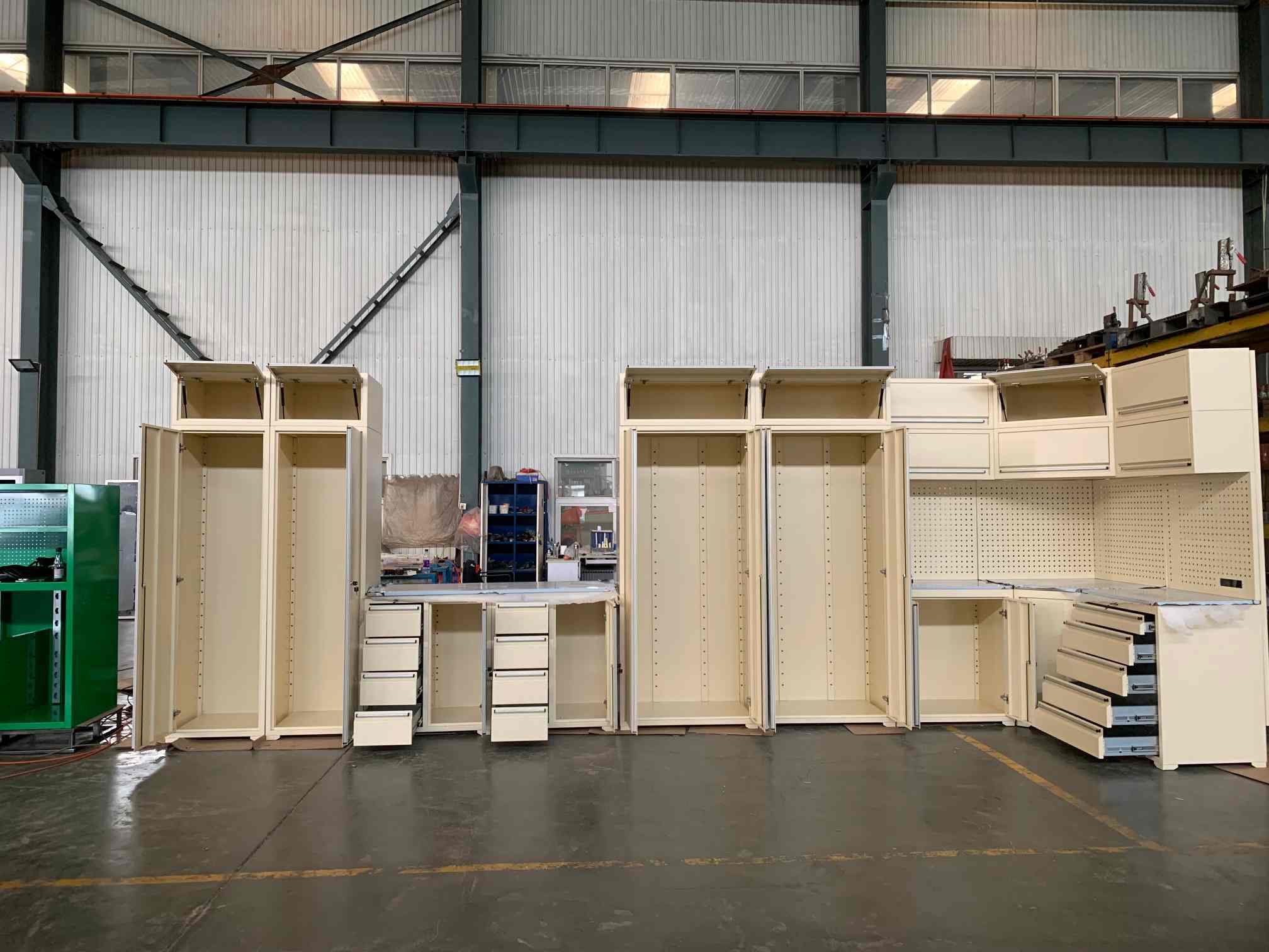 Кабинет алата, радна плоча алата, гаражно ормарић, алатна јама, кутија за алате, прибор за груди, контејнерска кућа и тако даље.